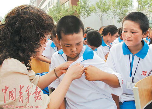 今天(5日),青海省玉树县12岁的藏族学生更尕求占,在天津开始了自己的初中生活。接收她的天津市东丽区耀华滨海学校为共计563名玉树学生举行了开学典礼,他们当中绝大多数是藏族学生。5个月前,他们的学业和生活被突如其来的地震打断。