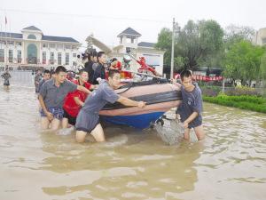 冲锋舟把孩子们安全送出校门。高 峰 摄