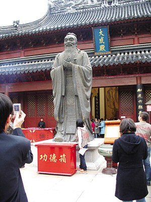 为求好成绩摸孔子像双脚