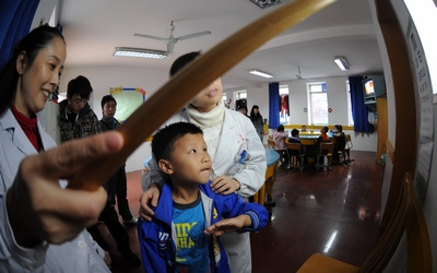 今日是国际盲人节。昨日,湖南省儿童眼视光弱视斜视防治中心、湖南省儿童医院公布,他们采取随机整体抽样形式对湖南省11520名儿童进行视力普查,发现幼儿园内儿童视力不良率高达20%~30%。昨日,该院眼科专家到长沙市特殊教育学校为新入校的盲童孩子进行验光和眼底检查。