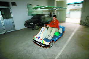 前几天,在北碚开了一家电脑商行的刘小斌叫女朋友照看商店,自己回到母校西南大学,将一辆外形简陋得像个玩具的小车开了出来。他告诉记者,不要小看这辆车,白天只要有阳光,它就能一直行驶,不喝一点汽油也不用电,而且零排放,晚上还能用车上的蓄电池供电行驶,“超级环保”。