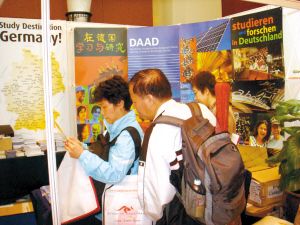 2009年留学已进入申请的关键期。近日,国际教育展接连举行,大大小小不下十场,而最重头的启德教育展和中国国际教育展也将在本周六分别在花园酒店和东方宾馆举行。记者在教育展上发现,到教育展上咨询的多数是家长,咨询会大多成了“家长会”。