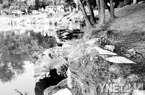 在未名湖东岸,湖面上漂着一层白色的绒毛,水面上随处可见被游客扔进湖里的帽子、塑料袋和报纸。“怎么水一点也不干净啊?”一个来自大连的旅游团经过此地时,两个女孩惊讶地说。