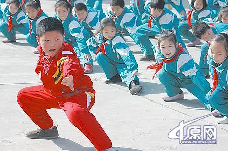 据中原区伏牛路四小的有关负责人介绍,同学们非常喜欢少林操和少林拳。师资力量比较紧缺的情况在不少学校都存在。