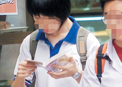 资料图片:中学生边走边看漫画书。