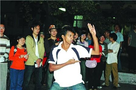 瑞士留学生“飘零”的一套“咏春拳”博得满场喝彩,他用不太流利的汉语自我介绍:“我来中国已经八个月,我从小就很喜欢中国武术,这套咏春拳是我到广东佛山时向当地人学习的”;来自斯里兰卡的米奇也不甘示弱,拿着中国的双节棍“哼哼哈哈”的舞了起来。十余名留学生还跟着几名中国学生练起了太极拳,一边练拳一边学说汉语……“汉语角”负责人白彦介绍:“许多外国朋友虽然学了中文,但在生活中依然存在着许多不便,在外面就餐、游玩时经常会遇到语言障碍。于是我们便仿照‘英语角’的形式举办‘汉语角’,既让外国人练口语,也能让他们了解中国传统文化。”(记者谈海亮 通讯员张闻 林贤宰)