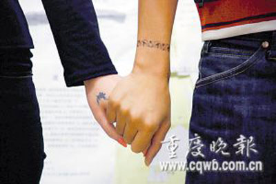 “来店里文身的学生情侣不少。”三峡广场地下商场“金山角”文身店老板赵莉介绍,大学生情侣一般选择相同图案或是对方名字,大多文在易遮盖的手指后或肩膀上。