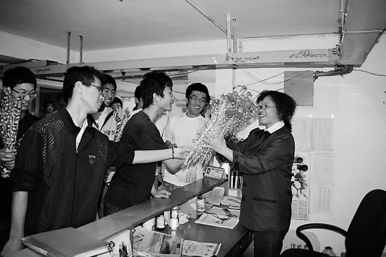 昨天是母亲节,整幢楼所有男生集体送花给她,祝她节日快乐。