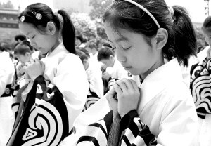 就在这满校园淡淡的艾草清香中,800个戴上“长命缕”和艾草香包的孩子低头共同为四川灾区的孩子祈福。(记者 张志颖)
