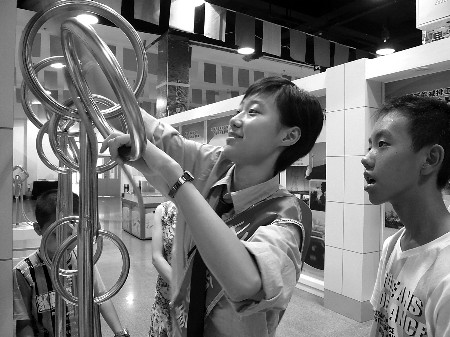 一些学生在省科技馆当起义务讲解员。 徐洁摄