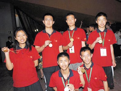 近日从西班牙马德里传来喜讯:在第49届国际数学奥林匹克竞赛中,中国中学生队以总分217分的成绩获得团体冠军。参赛的六名队员中,有两名来自上海,他们分别是上海中学高二学生牟晓生、华师大二附中高三学生张成。