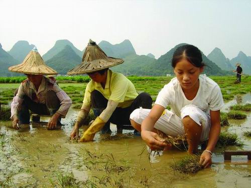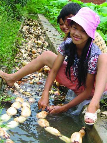 韦云彬是柳江中学高二的一名学生。8月初,从学校补课回到村里,她就开始跟随母亲下田帮别人种草。云彬告诉笔者,她从初中开始就一直利用假期和双休日来这勤工俭学,一学期可以赚上一千来块钱,正好能交上学费。寒假扯杂草,暑假来种草。每天早晨6点就搬着小板凳坐在湿漉漉的泥地里种草了,渴了就喝几口馊粥解暑,中午休息一下,下午一直种到7点才回家。她说,比起城里的孩子,自己虽然不能坐在家里看奥运、看喜欢的课外书或到处去玩,但是能靠打工为家里减轻负担,这样的假期也很快乐很充实。近些年来,柳江县白见村的板朝、板塘等村屯大力发展花草苗木,一年四季都需要大量种草、铲草工人,而这些活又非常容易做,老人、小孩都可以做,因此,家庭经济困难的中学生都利用假期开展勤工俭学活动,现在每天的劳务费是25元,一个暑假下来也有不小的收获呢。