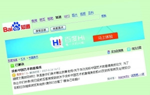 随后,记者打开百度知道,并输入关键字“浅析中国艺术的意境美”,结果正如该帖所描述的,该关键字的最佳回复就是自称曹老师的“肺腑之言”。