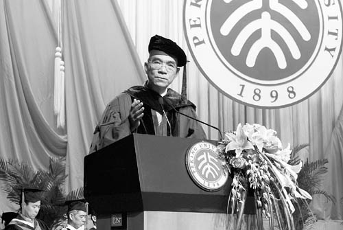 在毕业典礼那天,在奥运会的乒乓球馆中,那些四年前和我一起踏进这所校园的同学们,都穿上了学士服坐在一起。当林毅夫教授说:“只要民族没有复兴,我们的责任就没有完成,只要天下还有贫穷的人,就是我们自己在贫穷中,只要天下还有苦难的人,就是我们自己在苦难中,这是我们北大人的胸怀,也是我们北大人的庄严承诺。”全场爆发出了雷鸣般的掌声。我分明感受到自己已经热血沸腾。