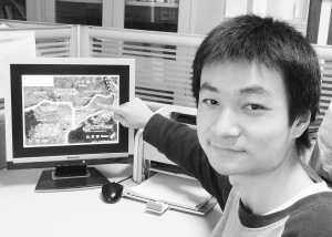 本报讯(通讯员 杨宏斌)半个黑瞎子岛回归中国,昨日,湖北经济学院法学系大二学生孙铖(如图,杨宏斌摄)亲手绘出中国黑瞎子岛回归示意图,在校园论坛上发布后,引起师生的普遍关注。