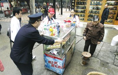 上午9点过,北碚街头出行市民开始增多,各种小摊贩也逐步增多起来。记者跟随其中一队体验志愿者看到,刚开始,大学生们还向带队的执法队员询问执法注意事项,在遇到有占道经营的商铺时还忍不住和队员一起上前,对占道商贩进行规劝,并动手帮忙搬运占道货物等。