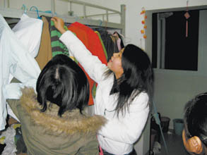 本报讯 实习生 高建慧 记者 魏莹 文/图 “有东西卖吗?”晚饭过后,南大四年级女生小高坐在自己的寝室里,几个低年级女生从门口探进脑袋问道,小高马上热情地领着她们来到自己的铺位下,让她们“尽情”挑选挂在那里的半新物品。经过一番讨价还价,几个学妹最终以43元的价格买走了一件毛衣和一本英文书。