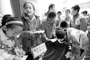 晨报讯(记者 罗德宏)“我们要帮助一年级的小弟弟小妹妹们学系鞋带。”昨天上午,中关村一小二(2)班学生王雪涵和同伴大声说出志愿服务的内容,这是该校志愿者小队现场招募志愿者时的场景(如图),他们所在的小队有个特别的名称——“系鞋带志愿者”。