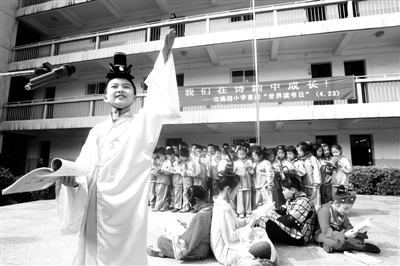 该校德育副校长肖建萍说,学校将国学经典古诗文诵读和校园文化结合起来,在五年前就开始开展“阳光阅读”活动。