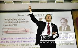昨天,“霍尼韦尔·诺贝尔全球校园行”活动为东南大学请来了重量级嘉宾——诺贝尔物理奖获得者,76岁的克劳德·科恩·坦诺奇(Claude Cohen-Tannoudji)教授。他以“光与物质”为主题,与东大学子分享了他的个人经历和学术成就。在与媒体见面时,科恩教授还主动“报料”称,他与祖籍江苏太仓的华裔科学家、美国能源部部长朱棣文是好友。