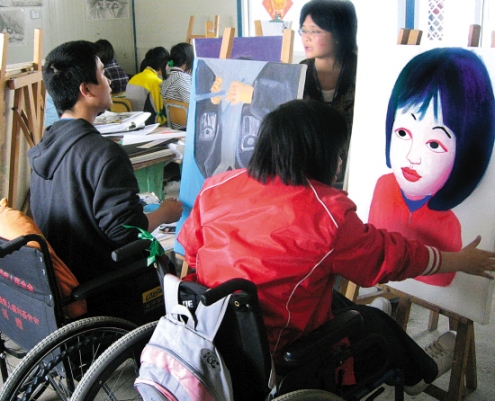 现在靠文化课上本科,对这届毕业生来看,我觉得很难。不过,从去年开始,我们有意识地动员高三学生突击学画画,毕竟艺术考生文化成绩不高,而且对残疾人来讲,学画画也是一个不错的出路。著名画家周春芽还专门辅导了我们这些学生。这次有30多名毕业生参加了艺术类统考,成绩不错,估计有10多人可以上本科院校。