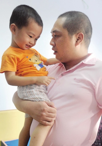 孩子父亲赶到天一幼儿园,孩子见到爸爸,终于破涕为笑。