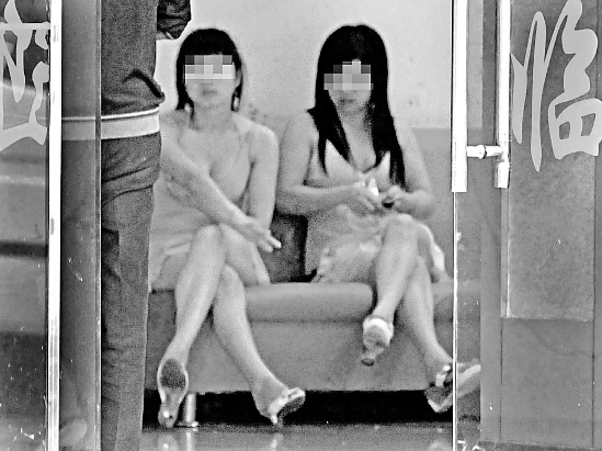 相比之金家桥路上的低调,这里可要热闹和“开放”多了。这些休闲店,基本都开着大门,很多女子坐在里面,穿着吊带衫,暴露得很。