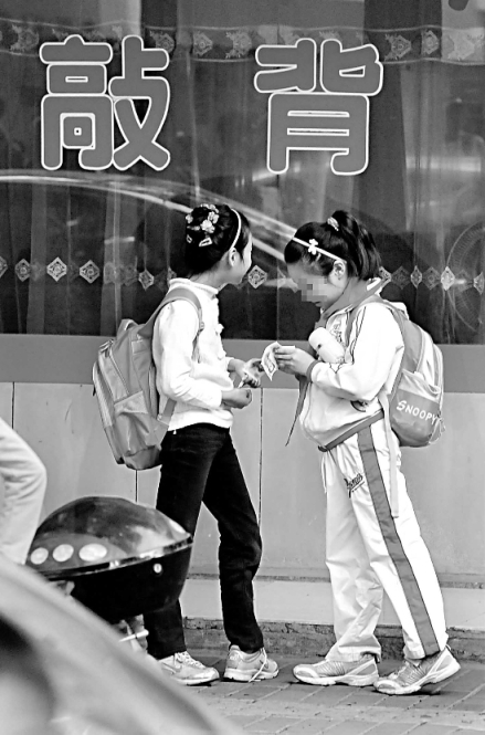 下午4点钟,学校放学了。孩子们纷纷走出了学校,路过休闲店时,有孩子好奇地往里面张望。