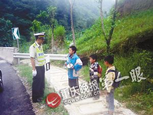 当天下午5时许,何江海与张雪华在渝湘高速公路巡逻,途经黄草互通立交处,发现3个小孩子在高速公路上穿行,东张西望的,好像在找什么东西。执法人员立即停车,将他们带离高速路,一问才知道,他们是武隆县黄草小学学生,就住在附近,上学放学时常发现车上有东西掉下来,他们打算上高速路捡废品,卖了换零花钱(如图)。