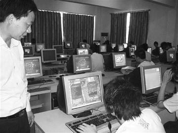 据管理电脑的一名女士介绍,这里180台电脑全部能上网,除上课时间外,均对学生开放。“老师要求学生不要玩游戏、聊天,但大部分学生听不进去,仍然玩各自喜爱的游戏。”据了解,在这里上网每小时收0.8元。