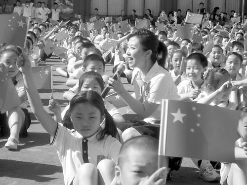 5月31日,北京市东城区府学胡同小学举行“欢歌庆六一,童心颂祖国”大队会,495名二年级学生光荣戴上红领巾。中央民族歌舞团青年歌唱家、“红旗歌手”刘媛媛与3000多名师生同场高唱新中国成立六十周年的献礼新歌《国家》,表达了对祖国最诚挚的祝福。