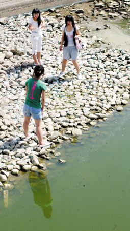 昨天上午9:00,大胡同附近的河边传来尖叫声。循着声音望去,只见河边站着三名女孩,其中一名穿绿色T恤的女孩最靠近河水。“别过来,你们再走一步我就下河。”说着,女孩把一只脚踩进水里,另外两人见状,只好停下脚步。几个好心路人见状赶紧拿出手机要报警,就在这时,几名男女青年拦住了要报警的人。他们称站在河边的三个女孩都是他们的同伴,她们是在“演戏”,不会真的轻生,听到这儿众人才算放心。