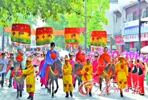 来自高州的广东省今年高考生物类总分“状元”陈磊,珠海的广东省今年高考文科总分和选考历史“双料状元”陈俊任,德庆县今年高考文科“状元”覃汉华、理科“状元”郭德铭4人身穿厚厚的宋朝状元服,分骑4匹高头大马,在“老先生”的引领和狮队、六佾舞队、礼仪队、罗伞队、嘉宾队、学生队以及大批群众的簇拥下巡游宋街,向学宫迈进。