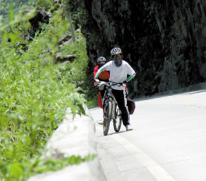 “最遗憾的事就是上脚巴山的时候时间较晚,最后我们搭了当地人的拖拉机上山,两次差点翻下悬崖。”说起旅途最危险的时刻,姚雷现在都觉得有些后怕,脚巴山全是土路,在转弯的地方尤其烂,转弯的时候前轮撵上石头,方向就失去了控制。“6辆自行车,6个人,外加包包,整个拖拉机很挤,后面又没有挡板。”