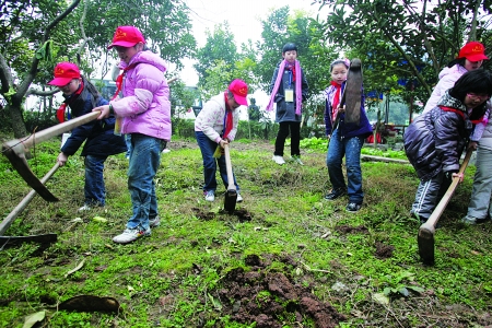 昨天早上8点半,小队员们就来到庄稼地里玩了一把真实的“偷菜”。“我知道,这是萝卜,这是白菜!”小队员们说,这些农业知识都是在“QQ农场”里学到的。接着,队员们拿着锄头跟着农民伯伯开始学习松土。拿着1米多高的锄头,队员们极不协调地刨着土地,“哎呀,好累了哟!”“就是,腰杆都酸了!”渝中区第一实验小学四年级的叶子禾说,网上种菜、收菜点一下鼠标左键就完成了,真正的种菜好累人哟。