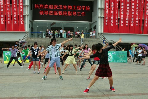 荆楚网消息﹝通讯员 梅婷 王群﹞一首布莱妮的three,全场手舞足蹈,洋溢出孩子般的童真。昨日,江汉大学文理学院艺术团为迎六一儿童节在操场上来了个舞蹈快闪。