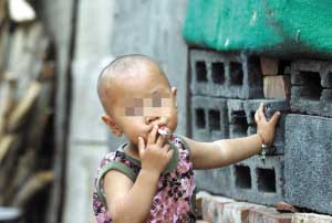 来到庭院的空地上,小浩独自玩着一辆儿童自行车。再次找到小浩的母亲刘女士,她依旧是一副无所谓的样子。她说,自从小浩开始吸烟,她没有发现过儿子因此患上过气管炎和其它病。加上每天都不断有邻居和熟人给小浩烟抽,从来不缺烟的小浩也就没出现过因戒烟造成的身体不适和情绪变化,所以至今她还没有考虑过强制给儿子戒烟。