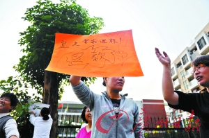 昨日下午4时,数10名家长聚集在了该幼儿园门口,部分心情激动的家长还打出了写着“坚决反对涨价”和“退回多收学费”的牌子。