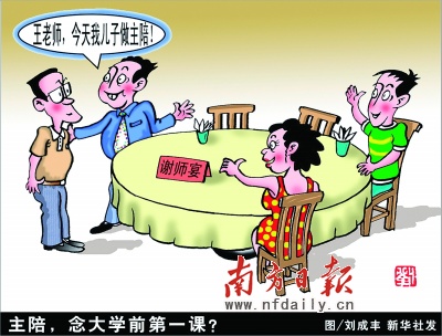 目前很多家长都存在功利、虚伪心理,他们想借此机会或明或暗地提示老师给其孩子予特别的关照和教育,不但使老师陷入被动,还可能使老师不得不松懈对学生的严厉教管。这对孩子的成长和学校风气都有不利影响。