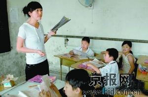 “在这个很简陋但整齐的教室里坐着50多个小学生,生于1986年的姚老师已经在这里任教两年。她带两个班,同时是一个班的班主任。每月工资虽然只有800元左右,每天工作十几个小时,但她没觉得苦。”