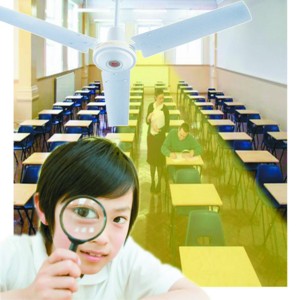 晚报讯 昨天,本市2009年中考落幕,某考点一位监考老师走出考场后如此感慨,“现在的孩子心理素质太脆弱了!”原来,一位考生反映,由于教室内的吊扇装在日光灯下,吊扇转动导致日灯光晃眼,影响其发挥,为了这根小小的灯管,学校师傅可是忙坏了!