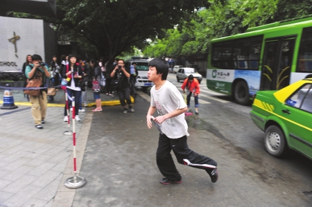 记者在出租车司机处了解到,此考生在衣冠庙上车,到成都七中,司机仅仅用了8分钟。