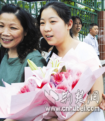昨在武汉市四十九中校门口,苏女士手捧一束红百合,为表弟送祝福;武大附中考场外,王妈妈也手捧鲜花迎女儿,“今天是女儿18岁生日,也是她经历人生第一个重要关口的日子。” (大学生记者董兢 杨蔚)