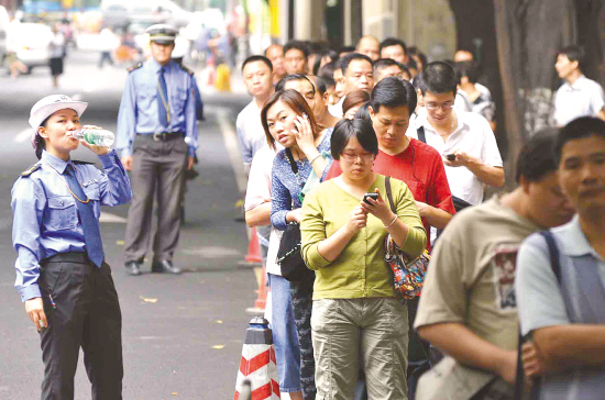 报名点上午冷热不一:海珠排几百米长龙,越秀排队者仅为上次五分一