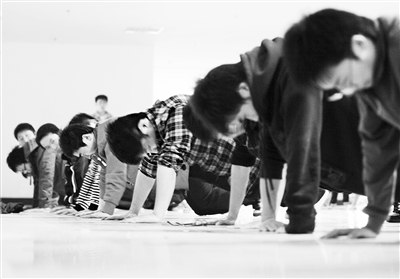 记者在第三组看到,考官用口令让学生间隔两秒完成一个动作,该组唯一的女生、数控技术专业学生王冲做到第10个时被喊停;一名男生做到15个时就支撑不住;做到20个时,考官称“坚持不住的可以站起来”,当场就有7名学生站起来,其他学生则坚持做完30个俯卧撑。