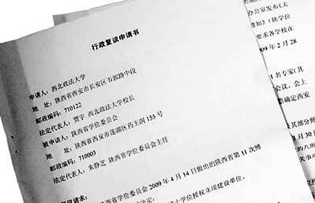 回到学校,我就决定按照法律规定向政府提出行政复议,认为学委会所作的行政决定是错误的,其程序违法,结果不公正。而陕西省政府法制办也受理了我们的申请。现在整件事就处于这个阶段,调查机制已经启动,会在一定的时间给予我们答复。