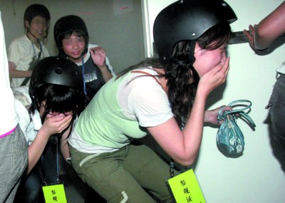 演习前,来自某中学的9名学生都被要求佩戴一顶黑色的帽子。消防博物馆负责人介绍,在逃生过程中的每一个举动,都会被帽子自动记录,进而通过电脑判断这个举动是否会危及你的生命。做完准备,9名学生进入演习场所。不一会儿,现场解说员提醒发生“火情”,要求学生们尽快逃生。所有学生都想到了拿一条湿毛巾捂住口鼻,并低着头、弯着腰往外逃。