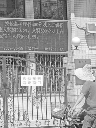 高考结束后,北京的不少高中学校的显著位置出现了“喜报”,报告自己学校在高考中取得的好成绩。