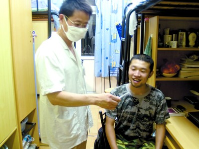 今天上午,在复旦大学第三教学楼内,该校校医院的医生正在给军训的学生进行迎世博急救知识培训。现场,讲解人员还当场进行了伤口包扎及人工呼吸的演示,这让学生们了解到现场急救的操作。不少学生还现场参与了急救演练。