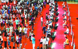 昨天,清华大学2009级新生开始报到,前来办理入学手续的大学新生在学校多功能体育馆红地毯上排起多路长队,依次拍照办理学生IC卡。